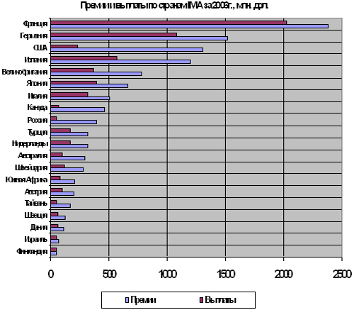 По количеству собранной в 2006 г. премии по инженерному страхованию страны члены IMIA разместились в порядке, указанном на рис. 1.