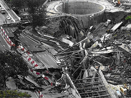 Рис. 8. Разрушения на строящейся линии метрополитена в Сингапуре в апреле 2004 г.